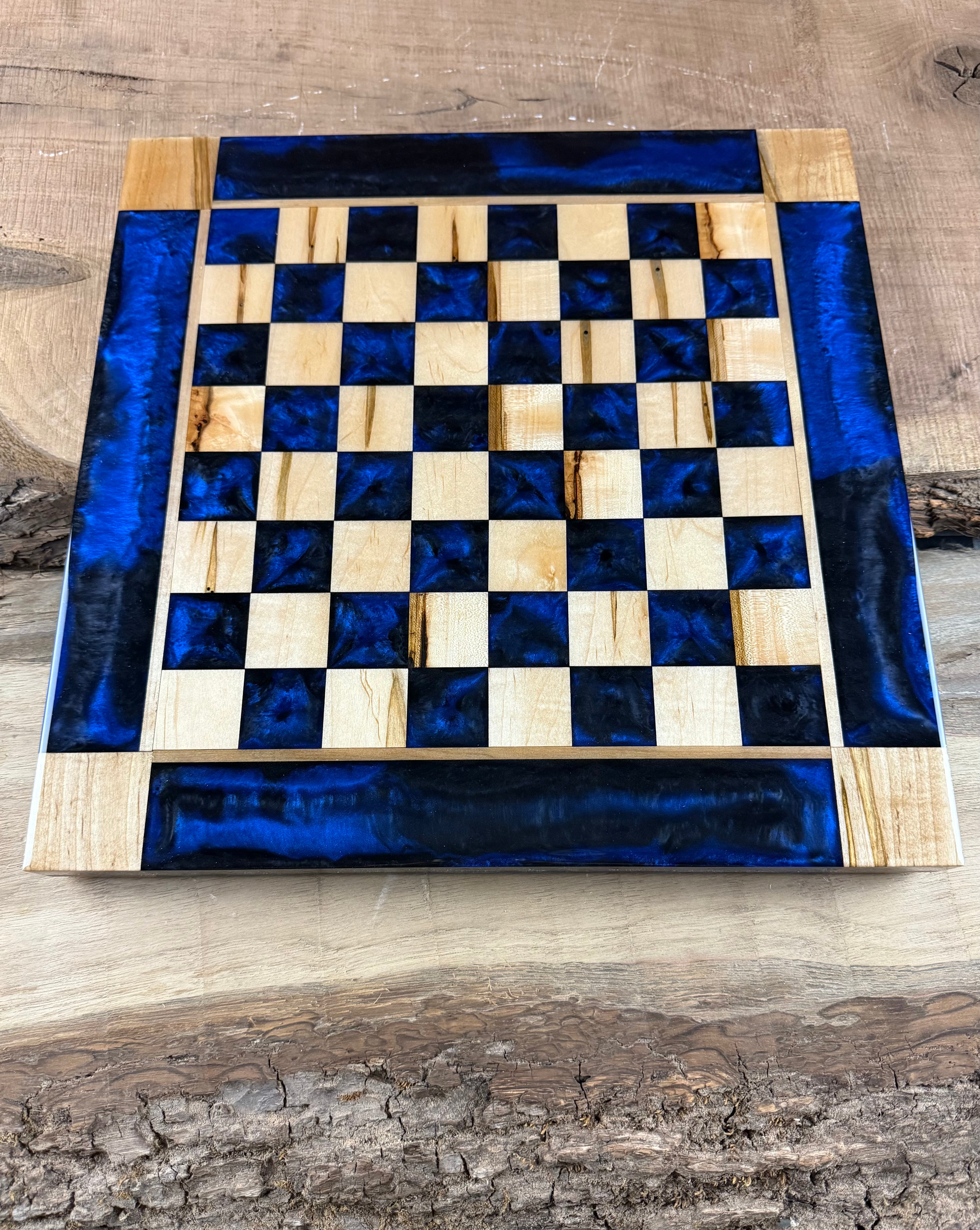 Black Onyx Deep Blue Maple Wood Chess Board (Glass Chess Set Included)