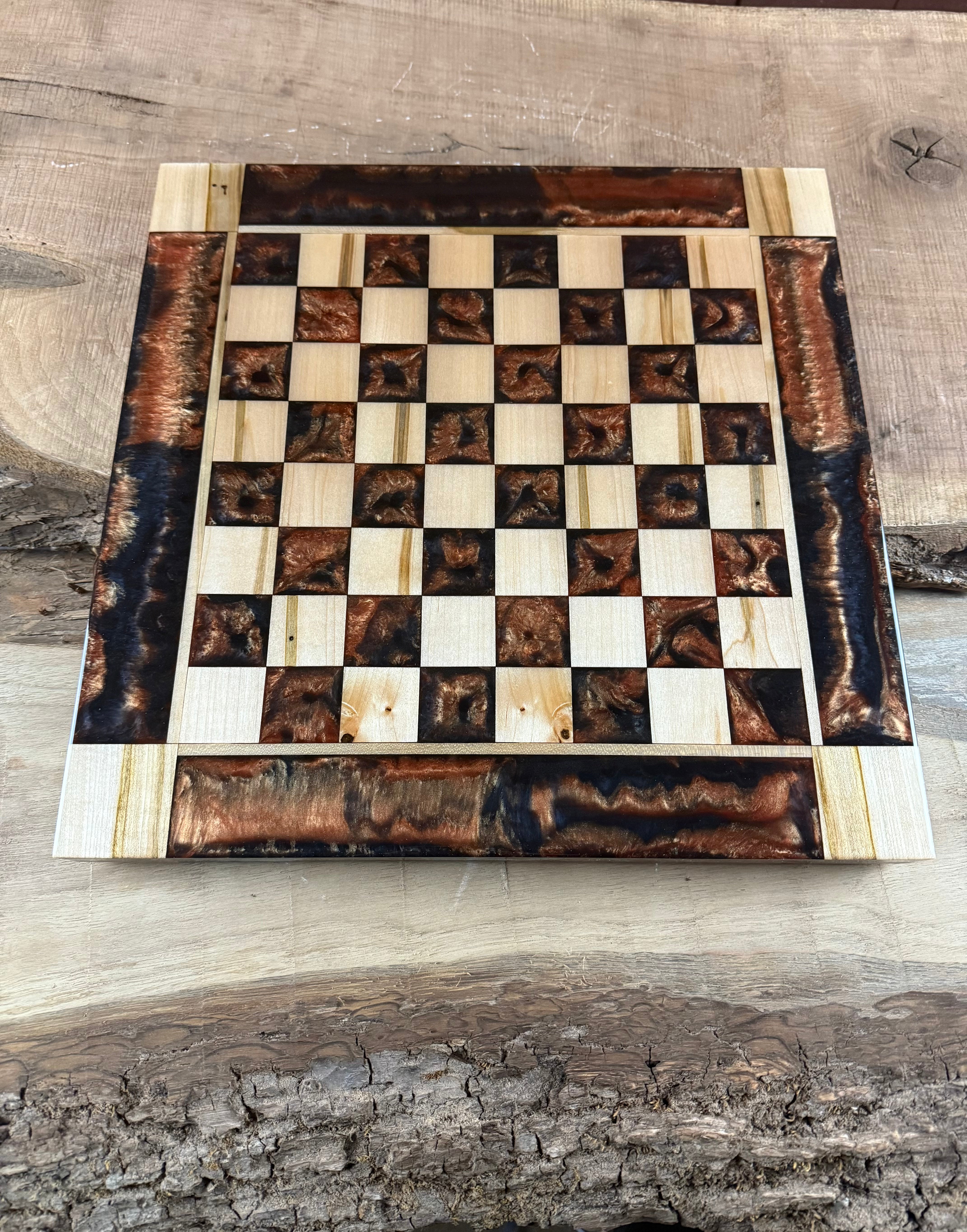 Black Onyx Copper Maple Wood Chess Board (Glass Chess Set Included)