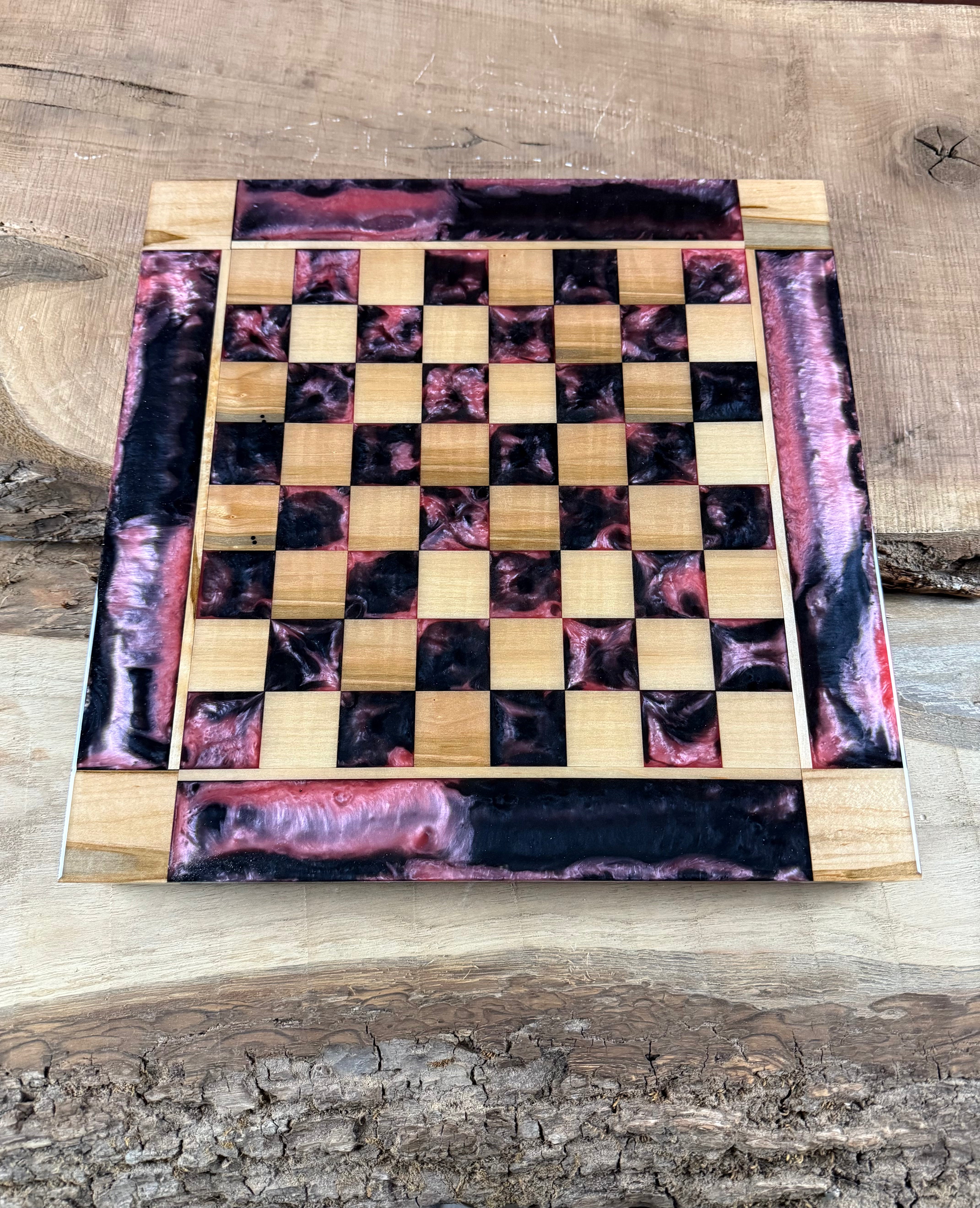 Black Onyx Purple Haze Maple Wood Chess Board (Glass Chess Set Included)