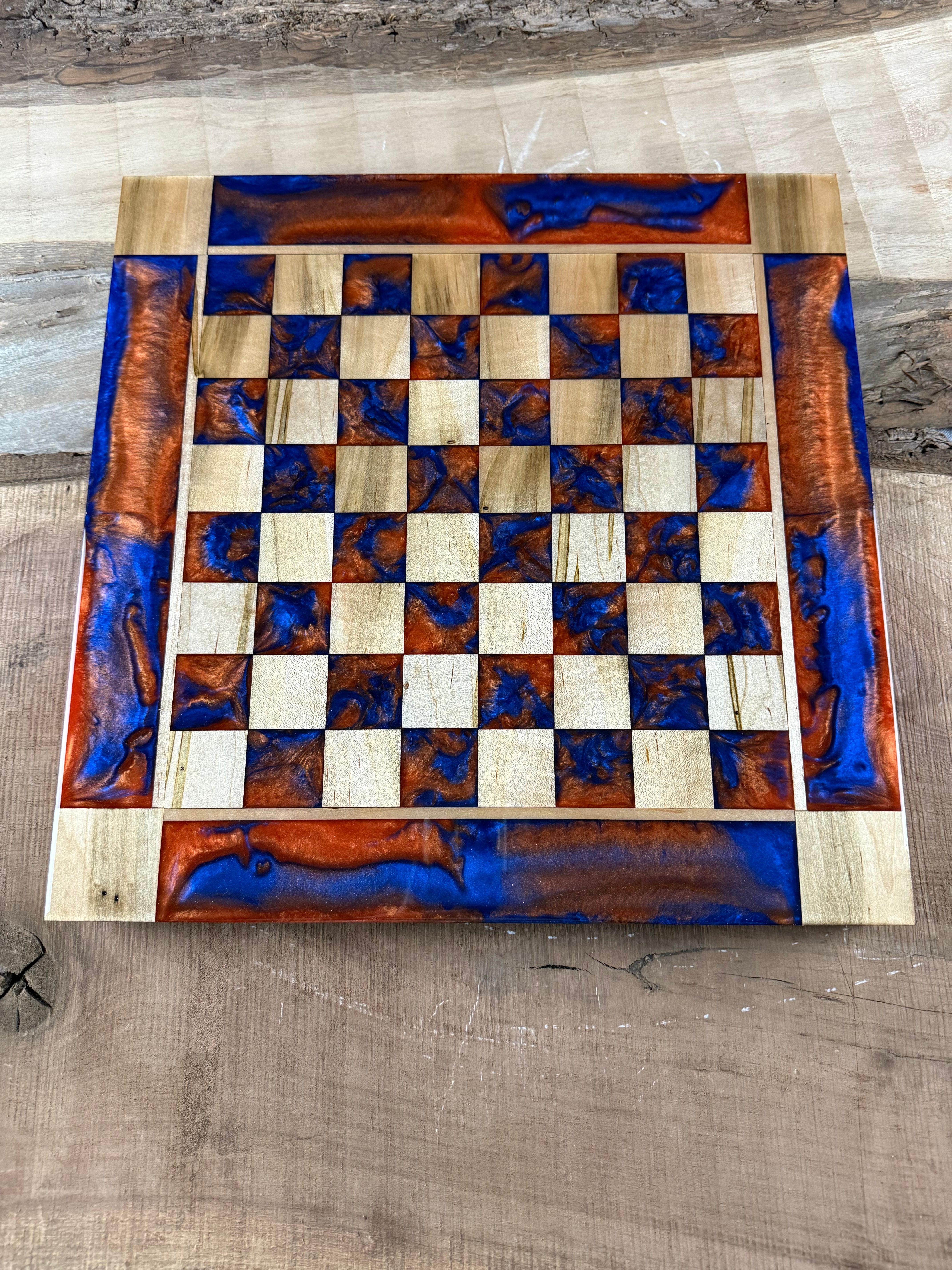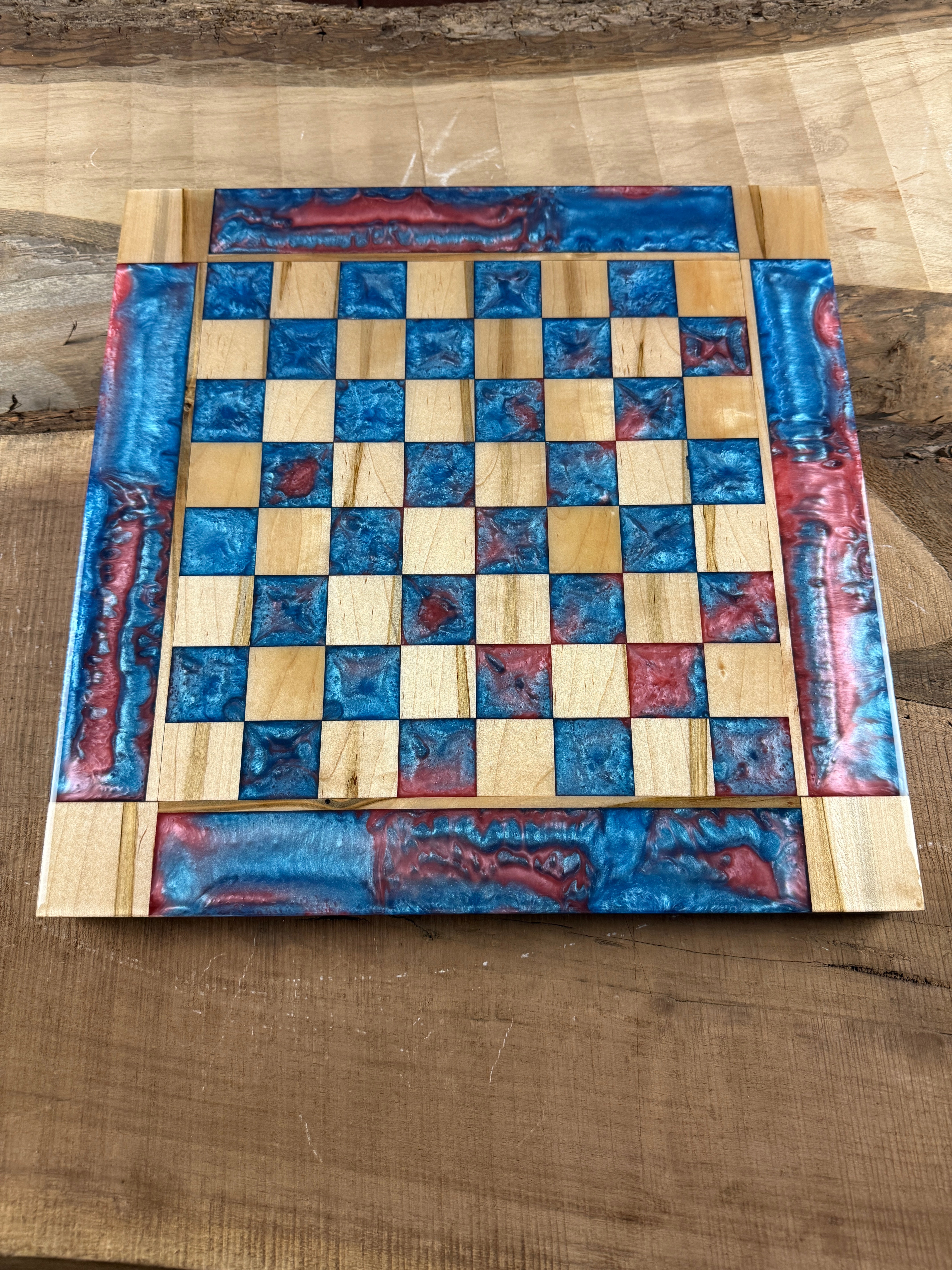 Deep Blue Red Lava Maple Wood Chess Board (Glass Chess Set Included)