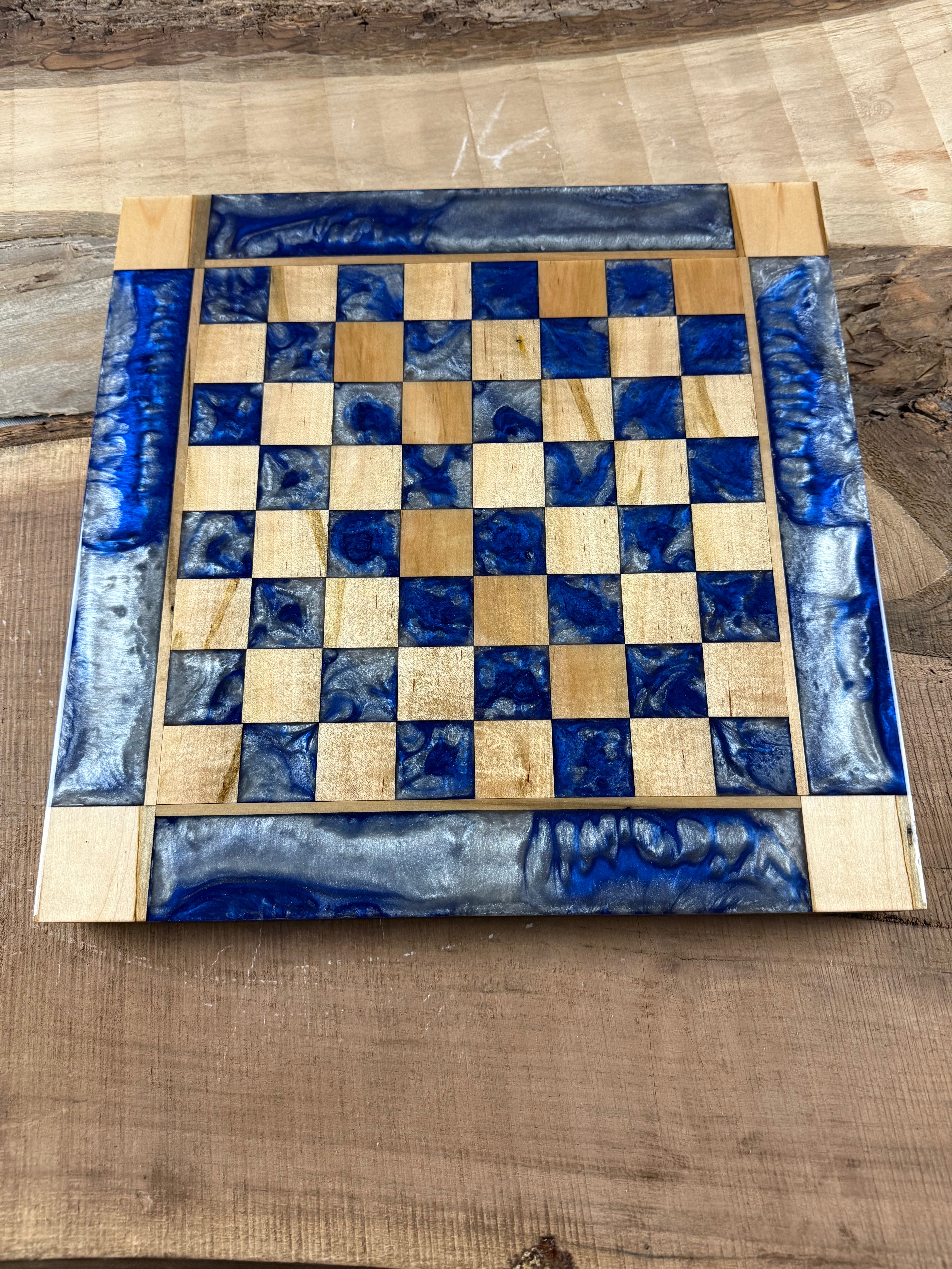 Deep Blue Silver Cloud Maple Wood Chess Board (Glass Chess Set Included)
