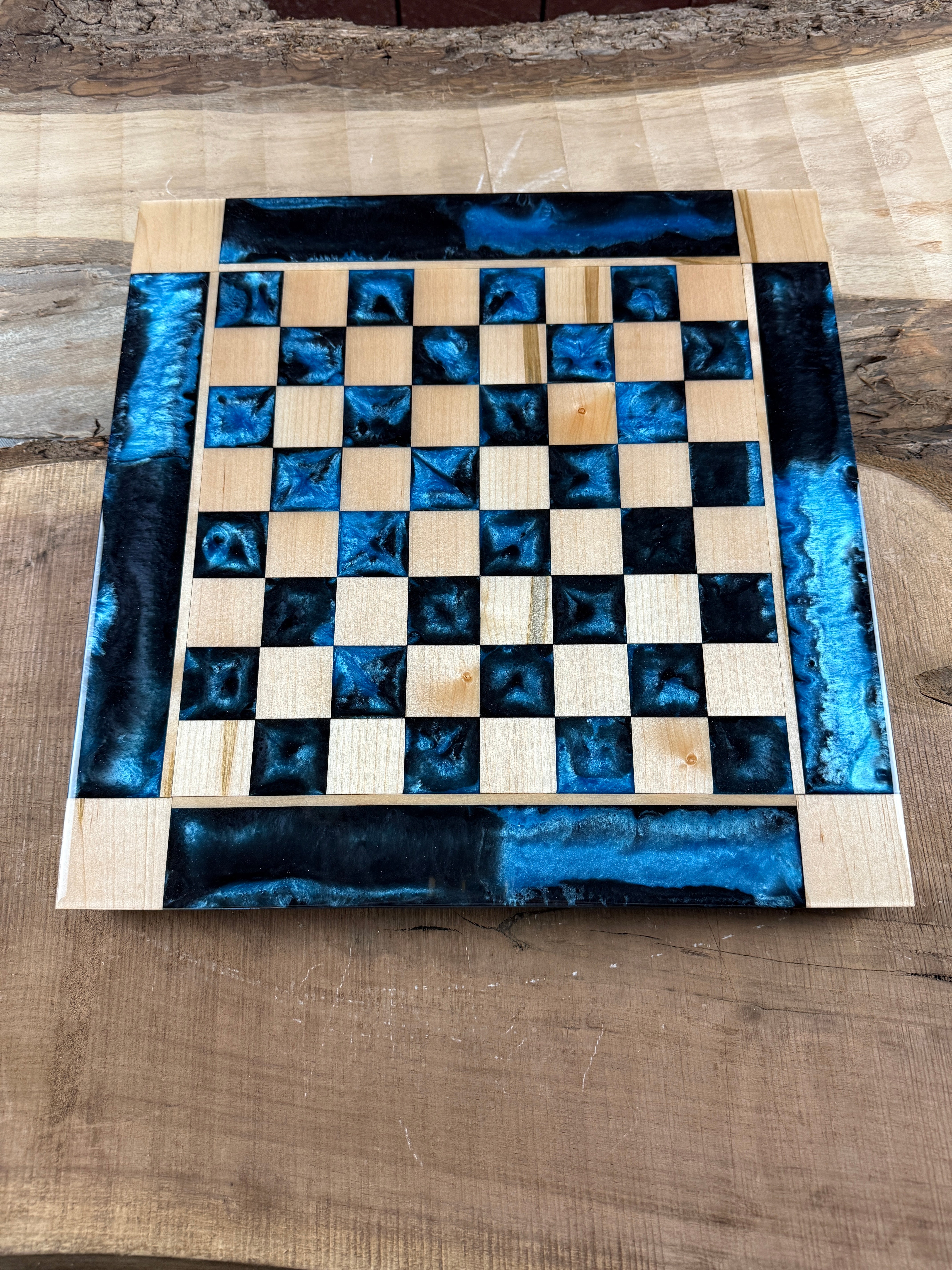 Deep Blue Cloud Maple Wood Chess Board (Glass Chess Set Included)