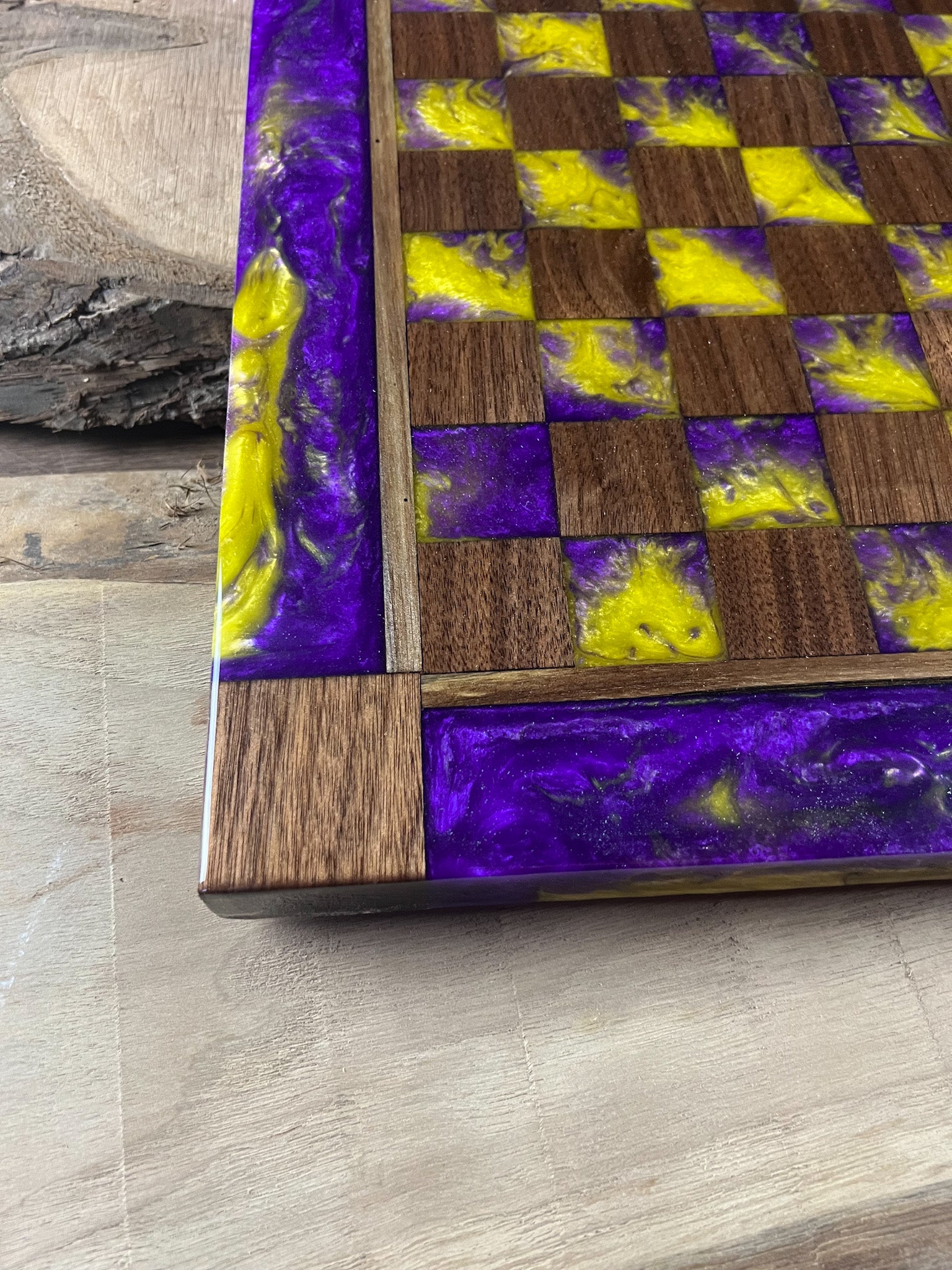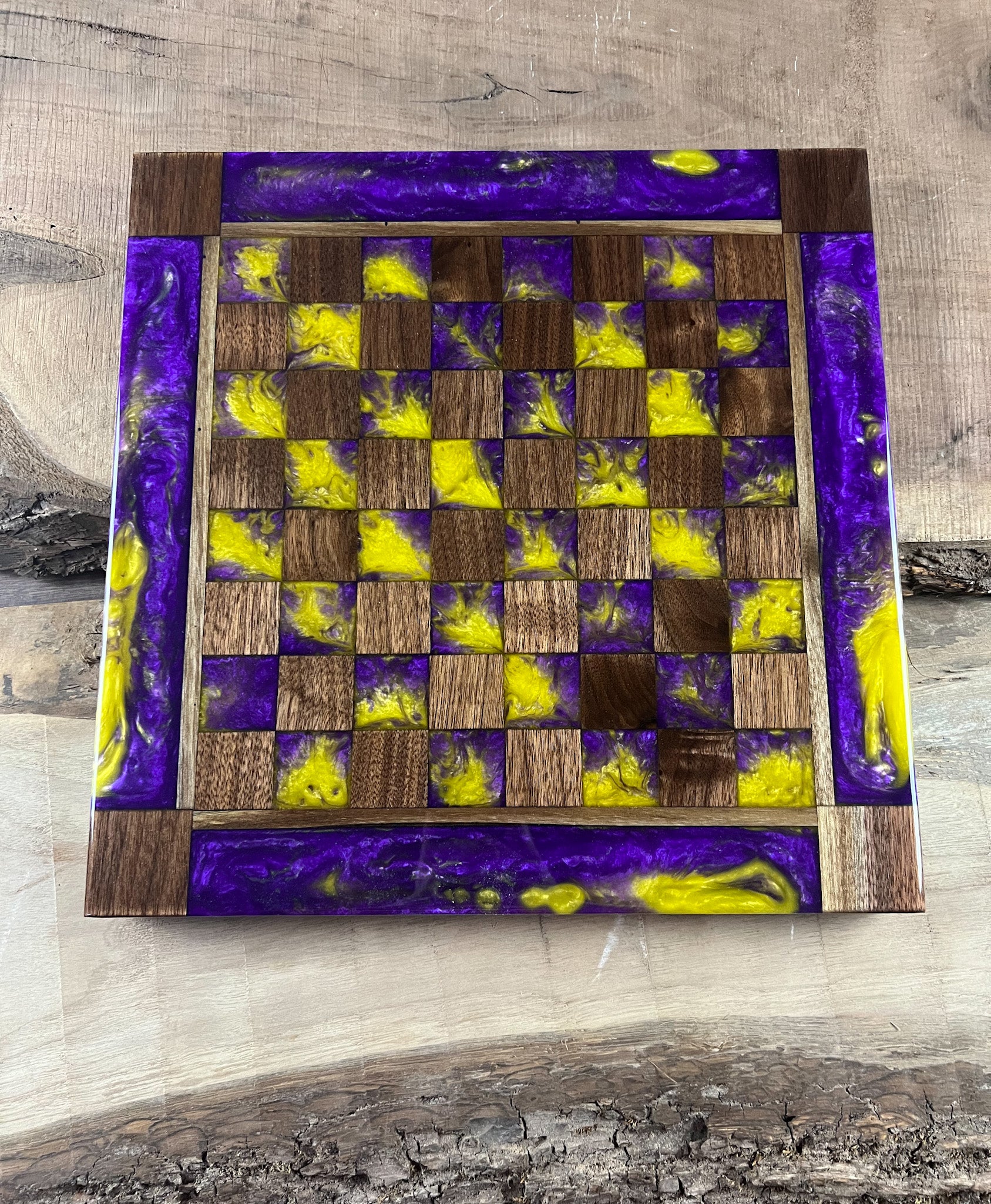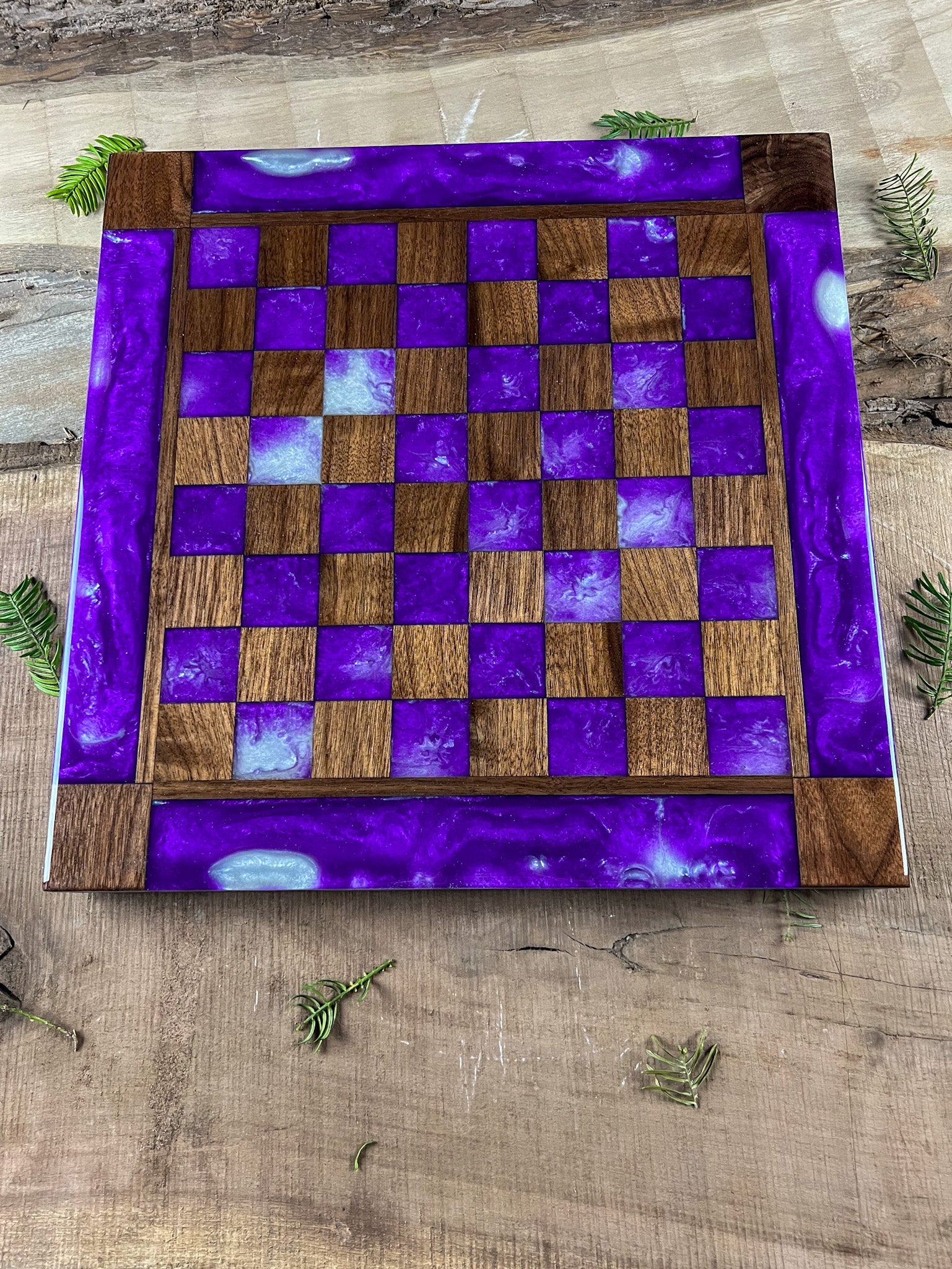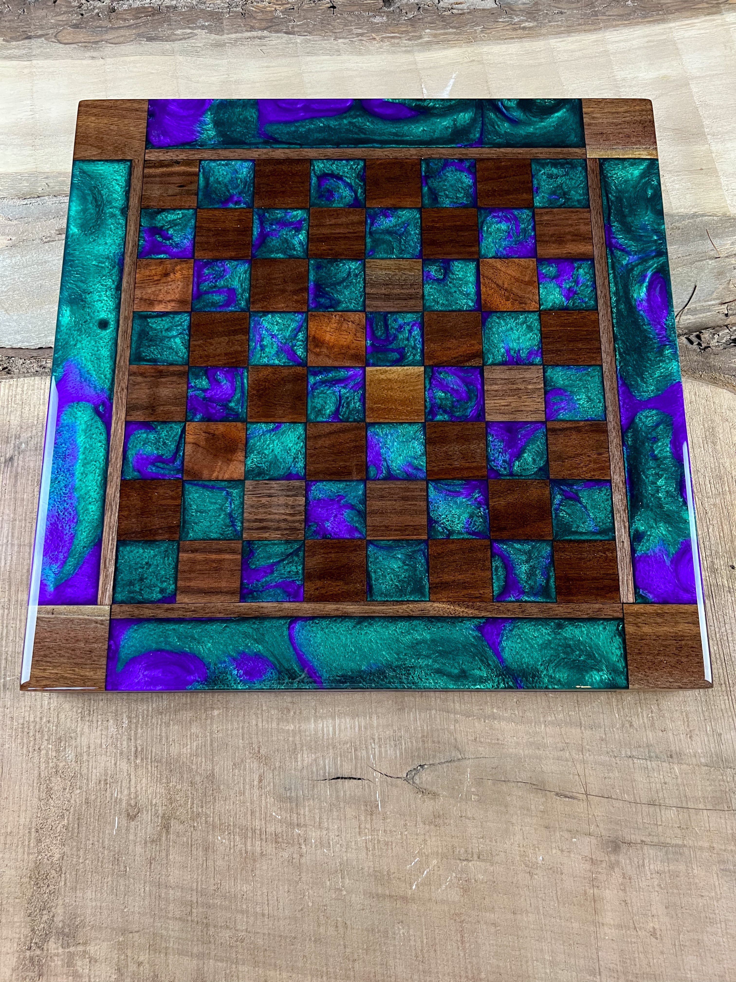 Purple Haze Emerald Black Walnut Chess Board (With Border)