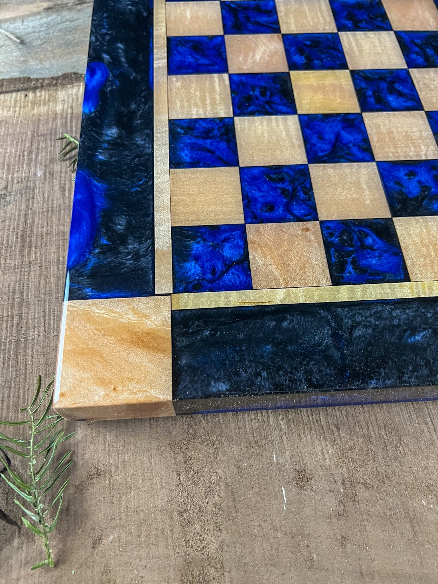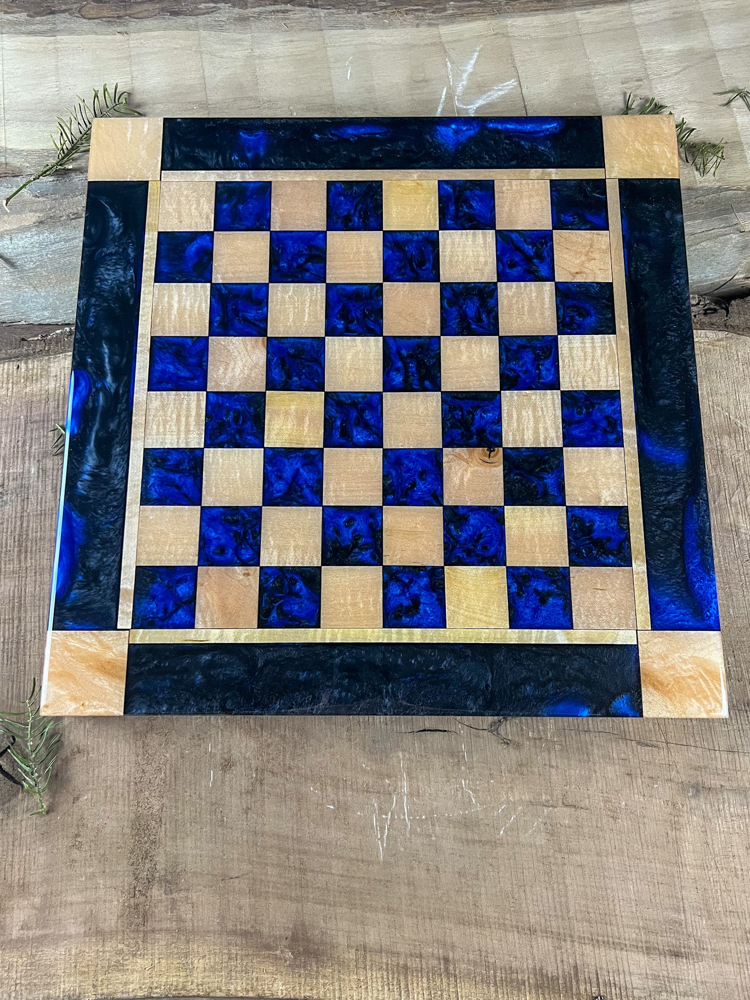 Black Onyx Deep Blue Maple Wood Chess Board (Glass Chess Set Included)