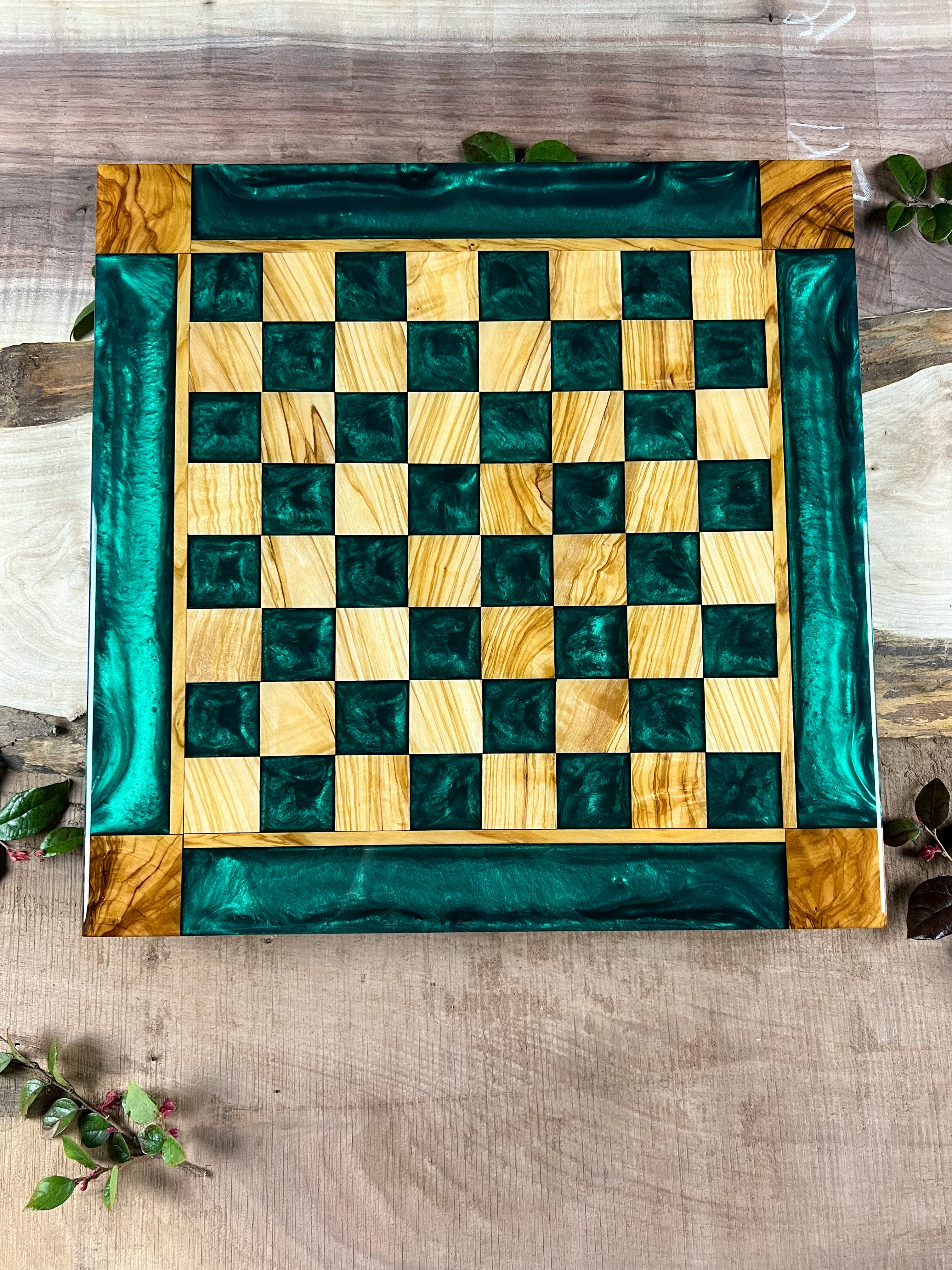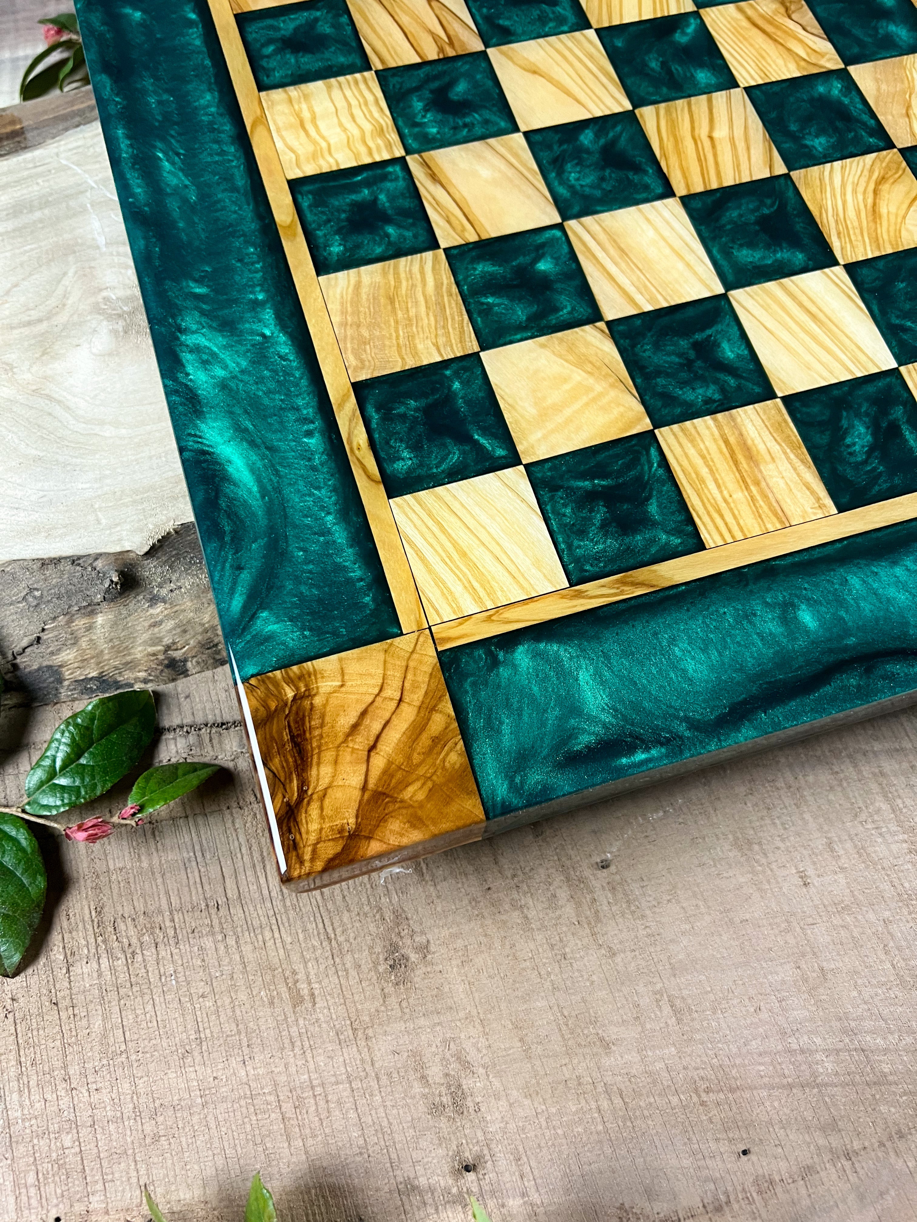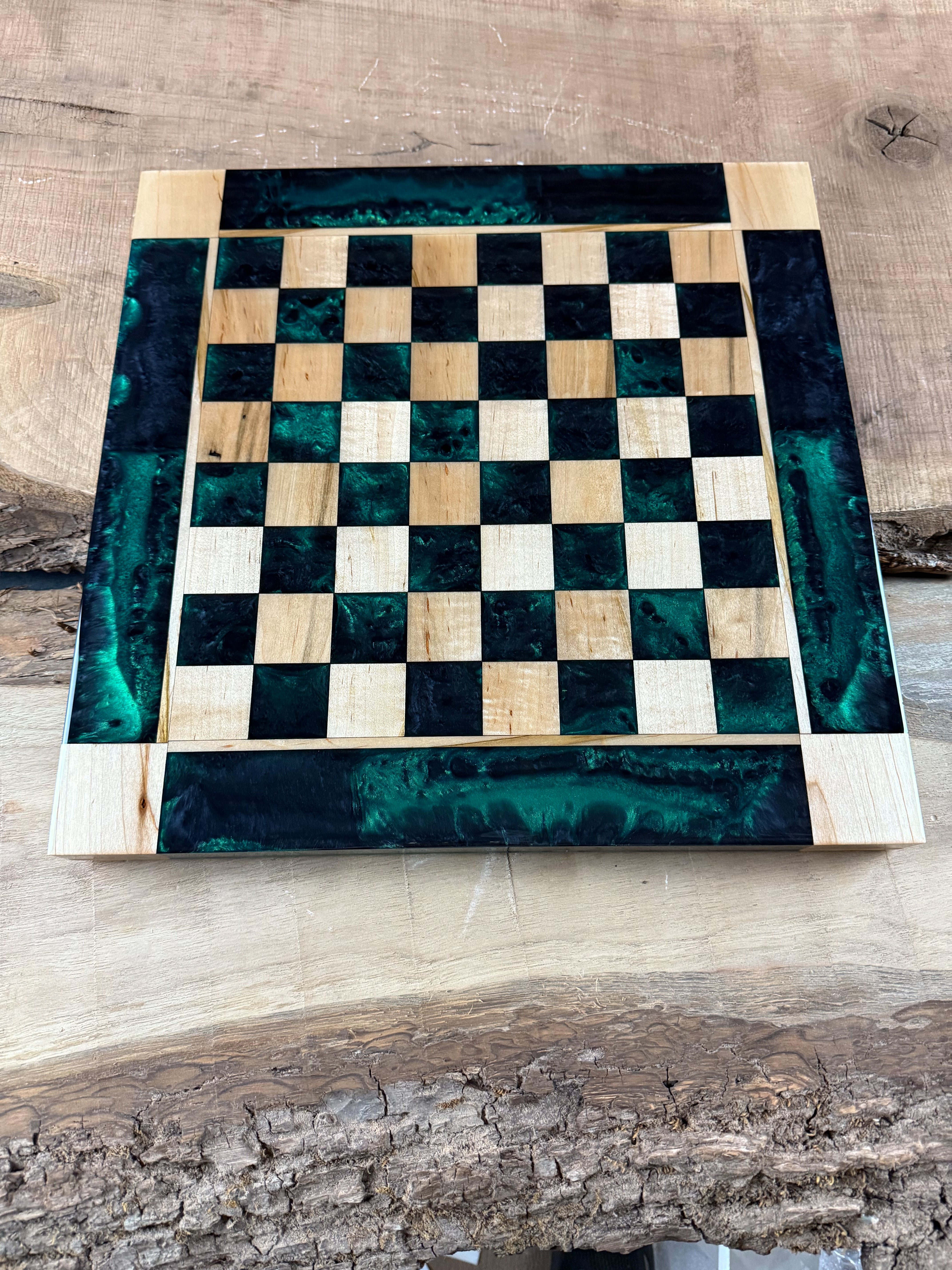 Emerald Green Maple Wood Chess Board (Glass Chess Set Included)