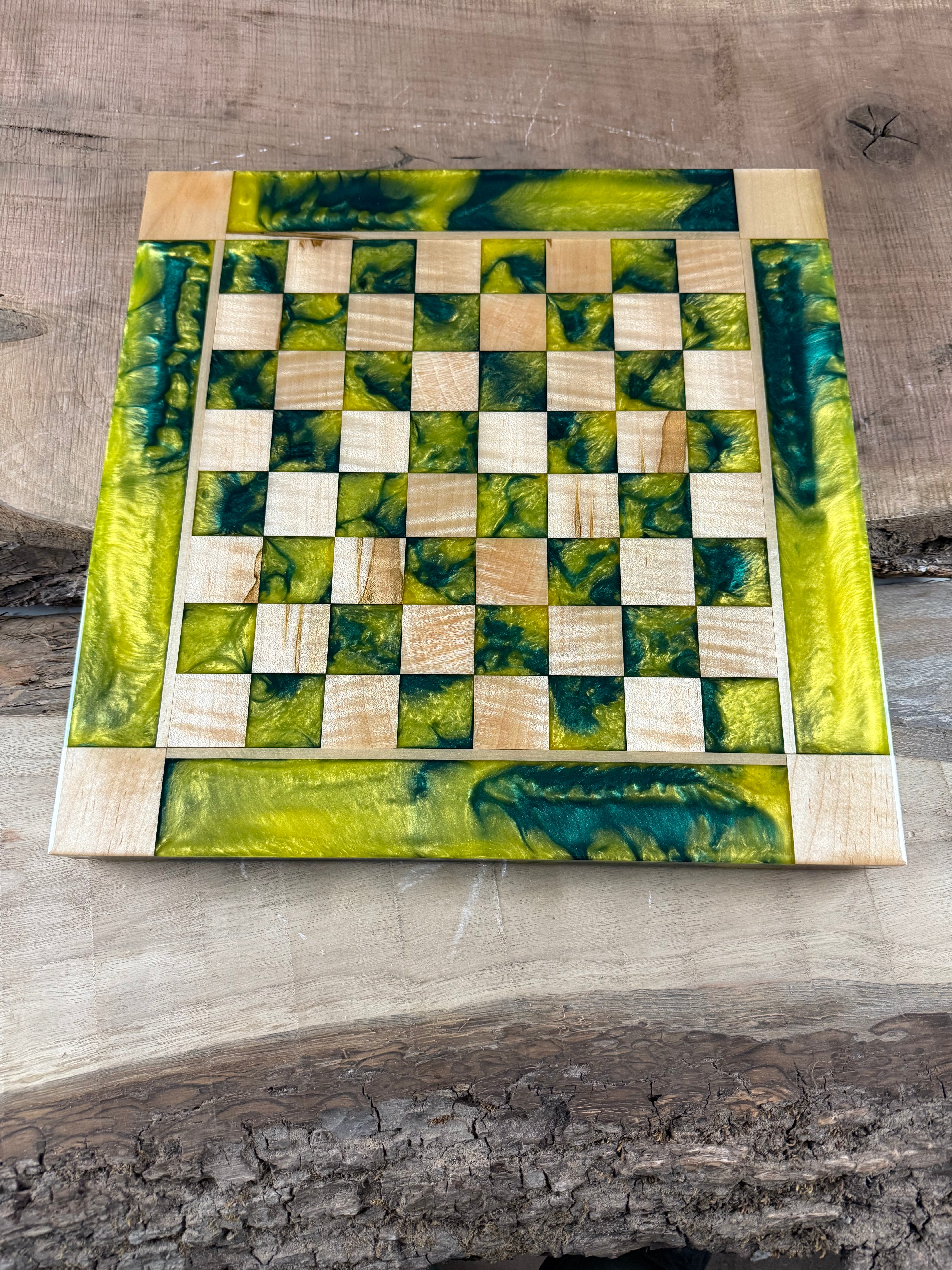 Vivid Golden Emerald Maple Wood Chess Board (Glass Chess Set Included)