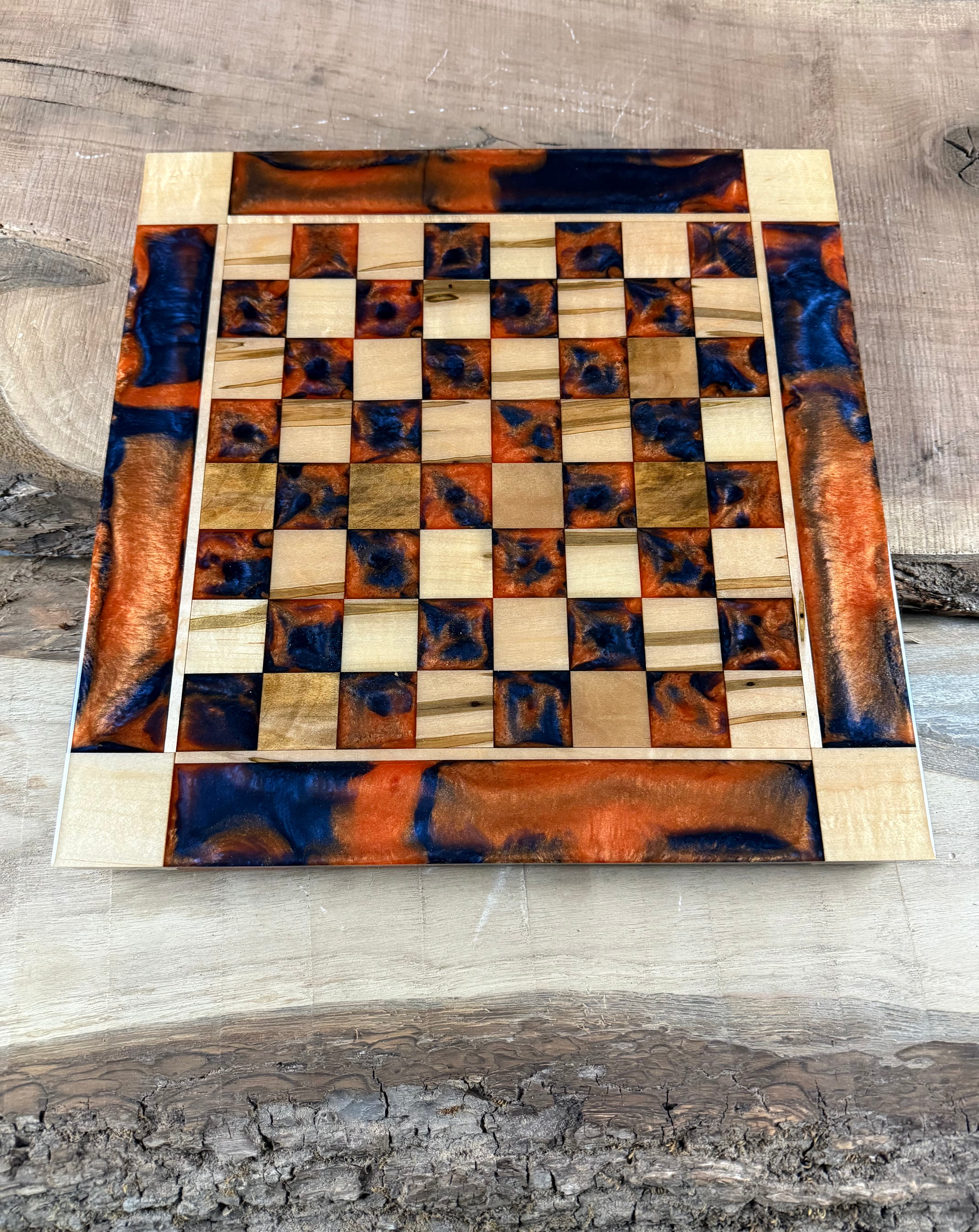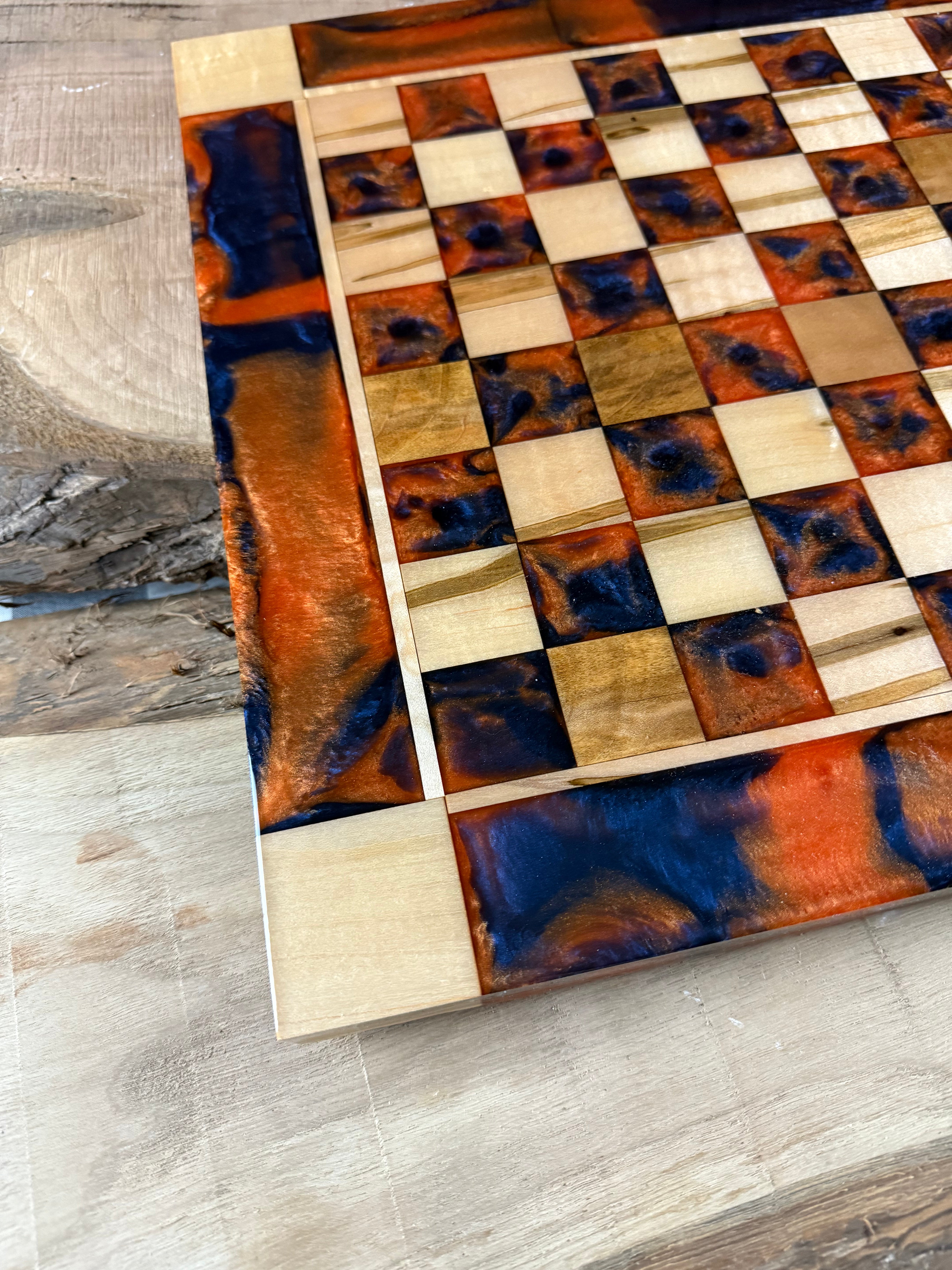 Vivid Orange Dark Blue Maple Wood Chess Checker Board (Glass Chess Set Included)