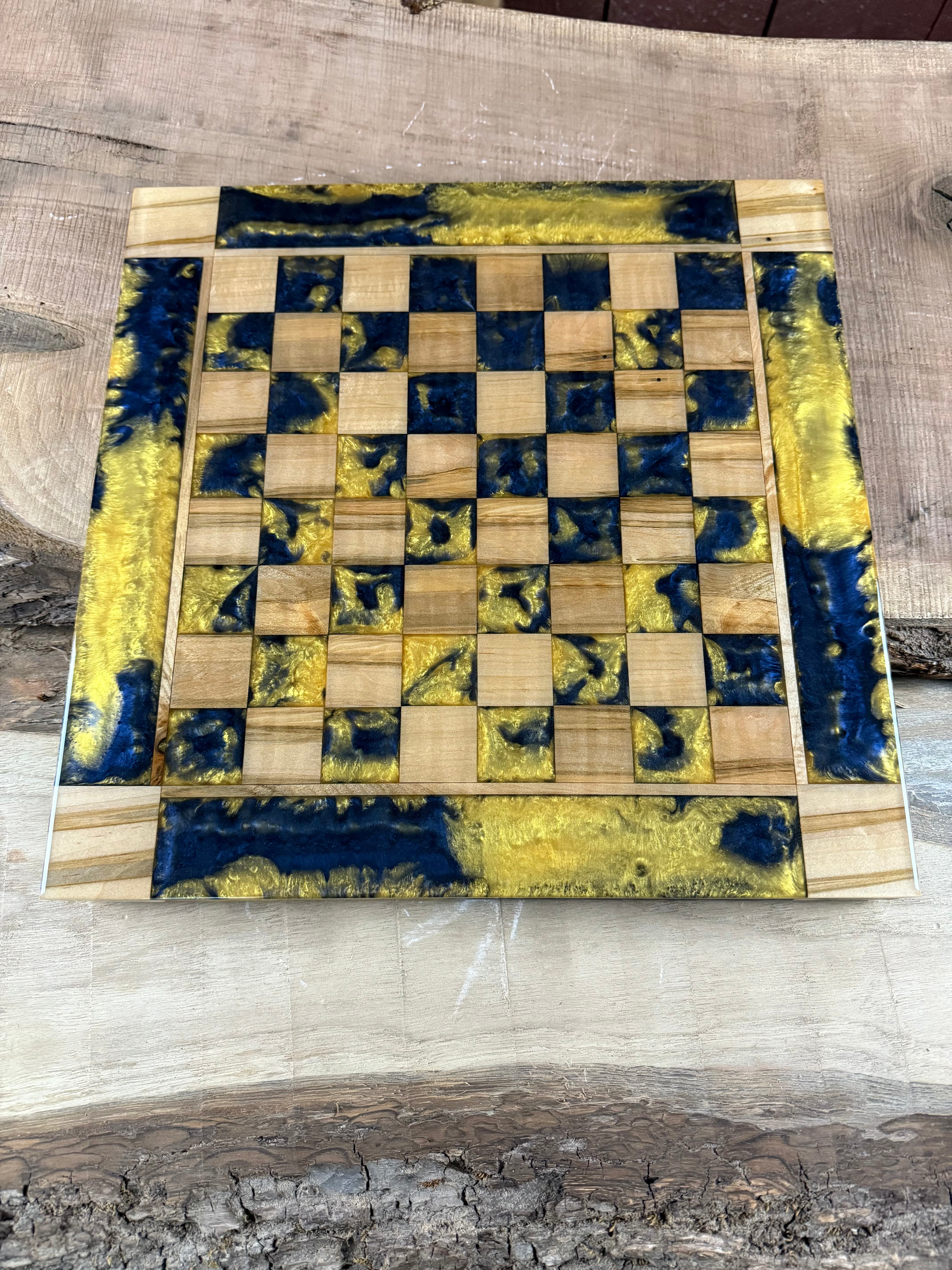Navy Pure Gold Maple Wood Chess Board (Glass Chess Set Included)