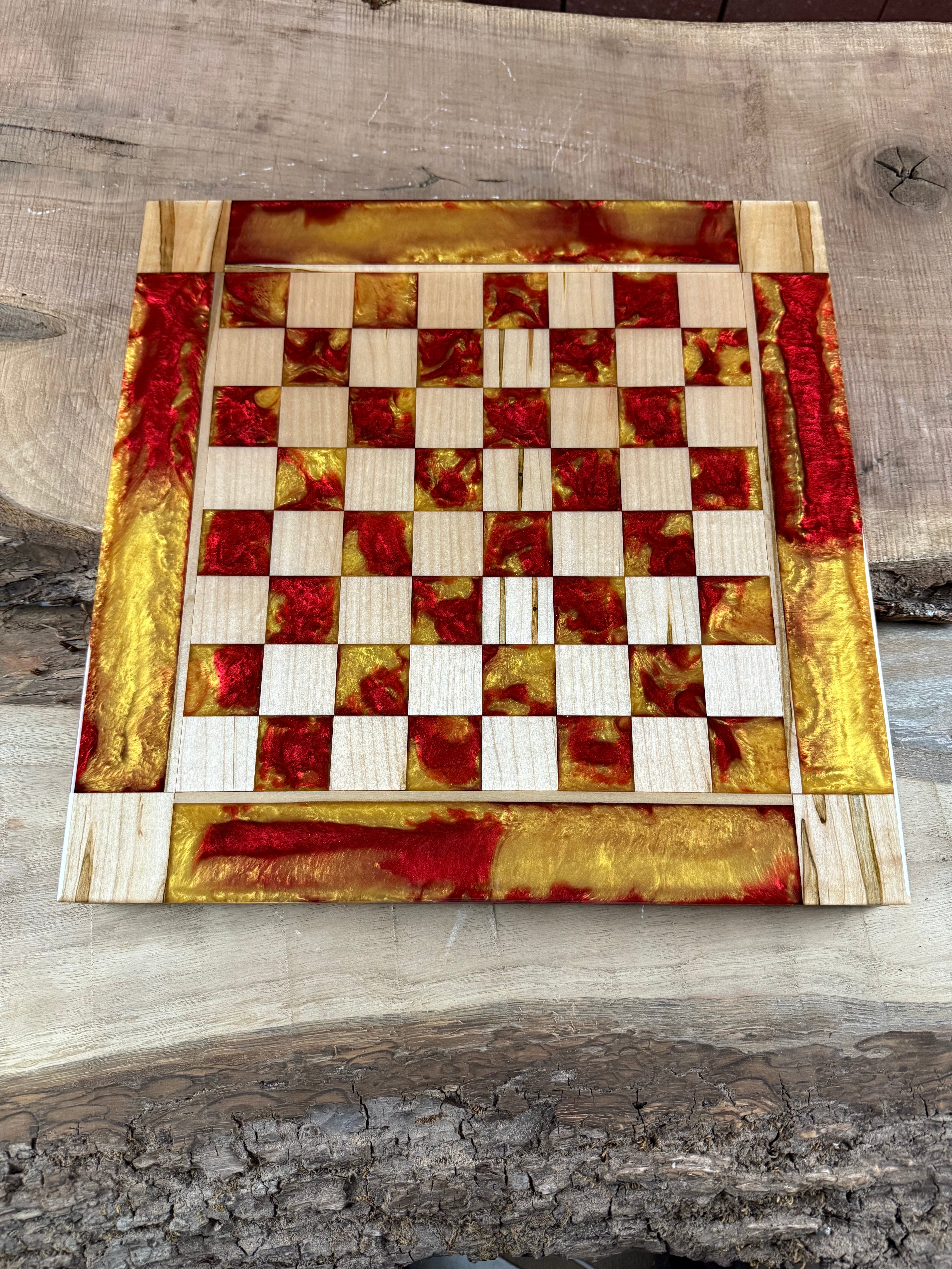 Red Lava Golden Maple Wood Chess Board (Glass Chess Set Included)