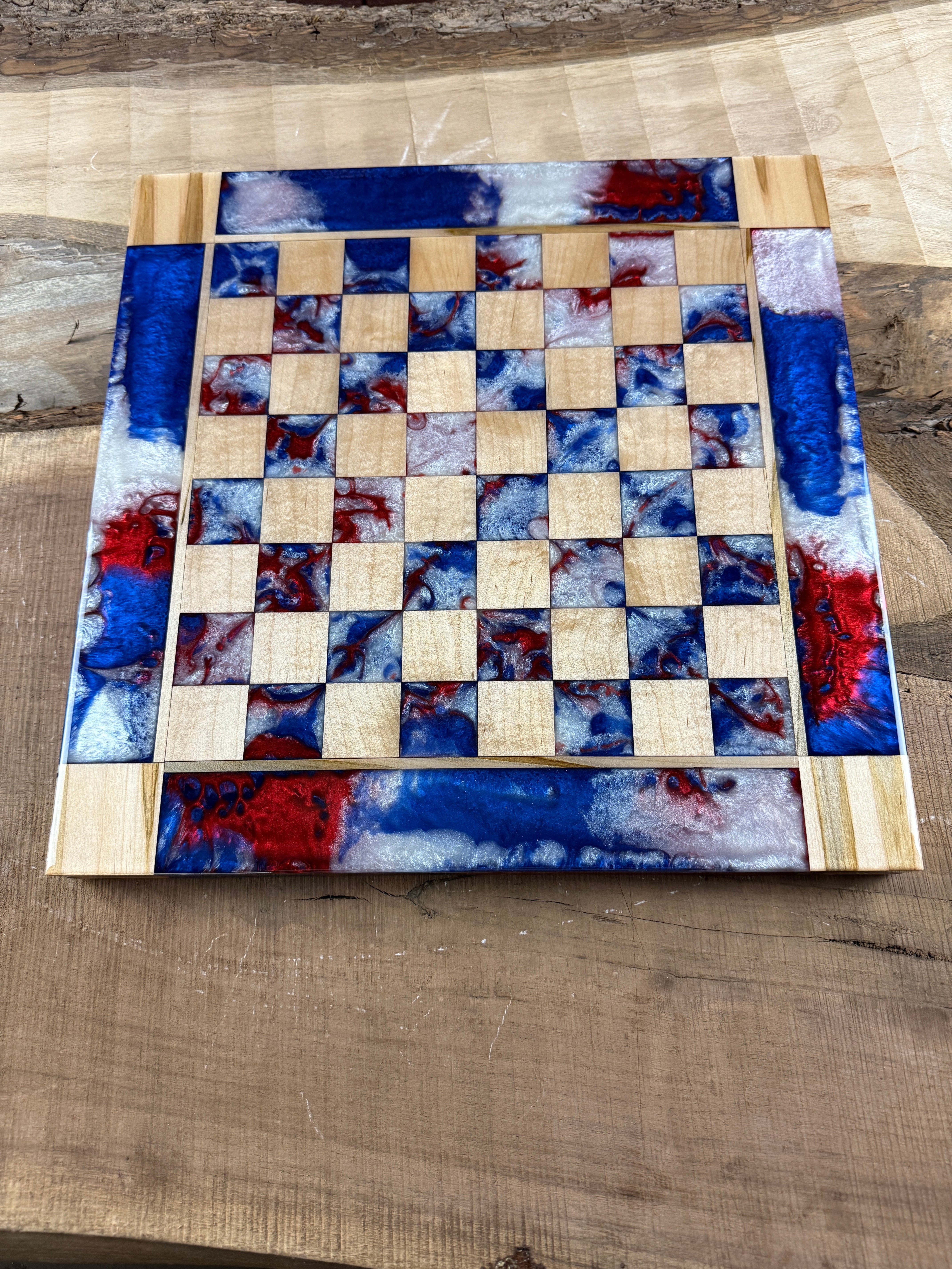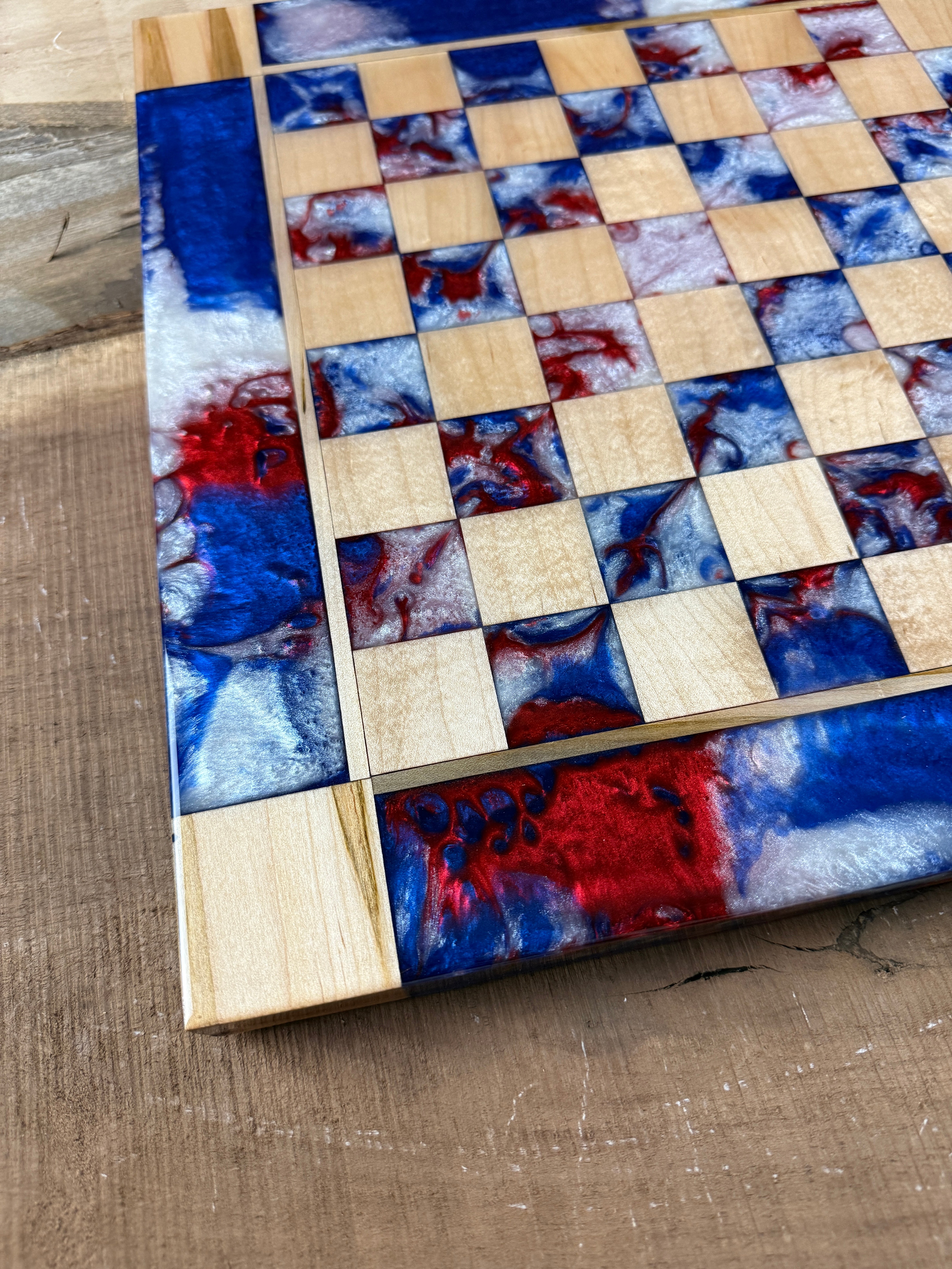 Red White & Blue Maple Wood Chess Board (INLCUDES PIECES)